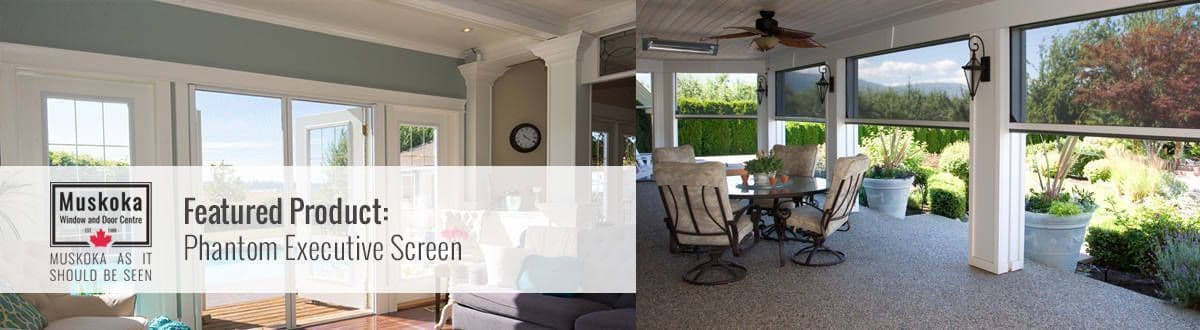 Also available to cottage owners is a unique mesh and vinyl combination roll screen that perfectly complements the executive screen, giving you the option to use them in tandem or individually. Phantom’s line of executive screens are manufactured with only the highest quality materials, including fabrics, vinyl, and a variety of strong mesh options specifically designed to keep out pests, block out heat and glare from the sun, or enhance your privacy and block out UV rays. A number of signature and custom colour options are available to help match the screen’s frame to your home. Muskoka Window and Door Centre is an official dealer for Phantom executive screens. Our expert team is highly experienced in their professional fitting and installation. For more information about Phantom executive screens, as well as the full line of Muskoka Window & Door Centre’s high quality line of window and door products, visit our website or contact us today
